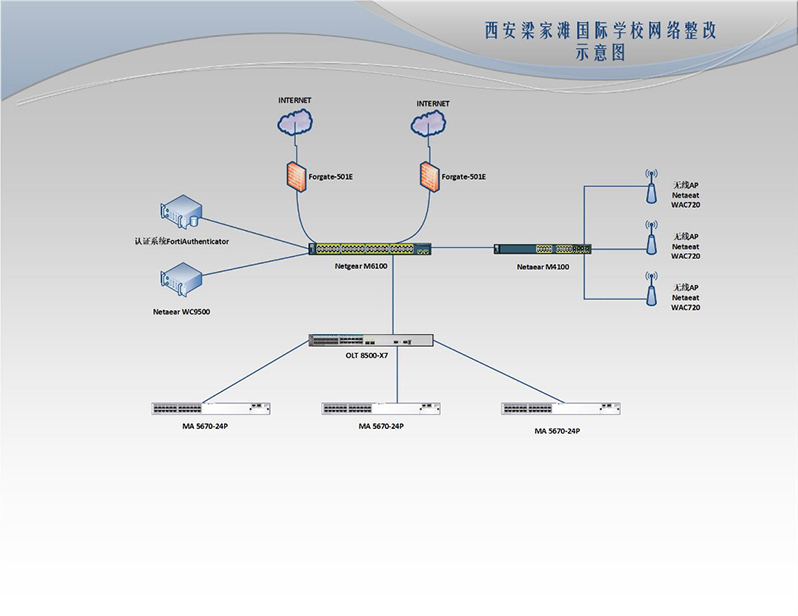 西安梁家灘國際學(xué)校是省市重點支持的國際學(xué)校,是西北地區(qū)第一所由國際文憑組織認證授權(quán)的世界 IB(International Baccalaureate)成員學(xué)校,是陜西省、西安市政府,高新管委會重點支持的國際教育項目。在這種背景下,成熟的計算機網(wǎng)絡(luò)技術(shù)和通訊技術(shù)為學(xué)校辦公自動化、網(wǎng)絡(luò)化的需求提供技術(shù)支持。辦公局域網(wǎng)為學(xué)校營造了一個安全、高效現(xiàn)代化的辦公環(huán)境,也使計算機的功能得到了充分的發(fā)揮。學(xué)校內(nèi)部聯(lián)網(wǎng)實現(xiàn)內(nèi)部互聯(lián)互通,辦公自動化、信息化,有利于數(shù)據(jù)交換、資源共享、打印共享提高企業(yè)效率